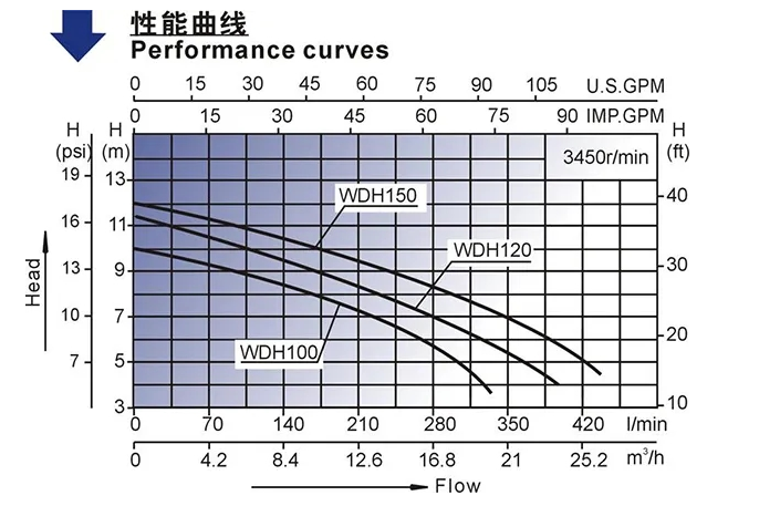 这种性能曲线适用于流量调节范围较大,而压力变化较小的系统,也就是对扬程要求变化较小、流量变化要求相对较低的系统中。大多数泵如IS单G离心泵、D型泵、双吸泵、IH化工离心泵等曲线的都是比较平坦的。
